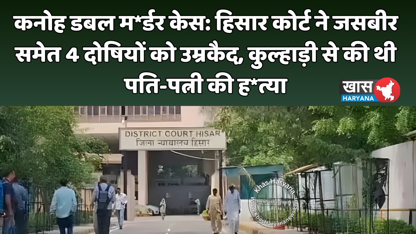 हरियाणा के हिसार जिले को हिला देने वाले कनोह डबल मर्डर केस में करीब ढाई साल बाद आखिरकार कोर्ट का फैसला आ गया है। अग्रोहा ब्लॉक के गांव कनोह में पति-पत्नी की बेरहमी से हत्या करने के मामले में एडिशनल सेशंस जज (एडीजे) निशांत शर्मा की अदालत ने बुधवार को चार दोषियों को उम्रकैद की सजा सुनाई है।