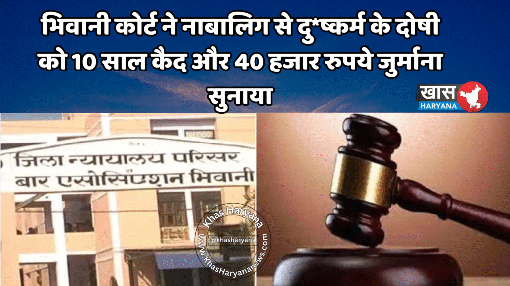 भिवानी जिले में नाबालिग लड़की से दुष्कर्म के मामले में अदालत ने दोषी को 10 वर्ष की सजा और 40 हजार रुपये का जुर्माना लगाया है। एडीजे सुरुचि अटरेजा सिंह की अदालत ने यह फैसला सुनाते हुए आरोपी की गंभीर अपराध में भूमिका को ध्यान में रखा।