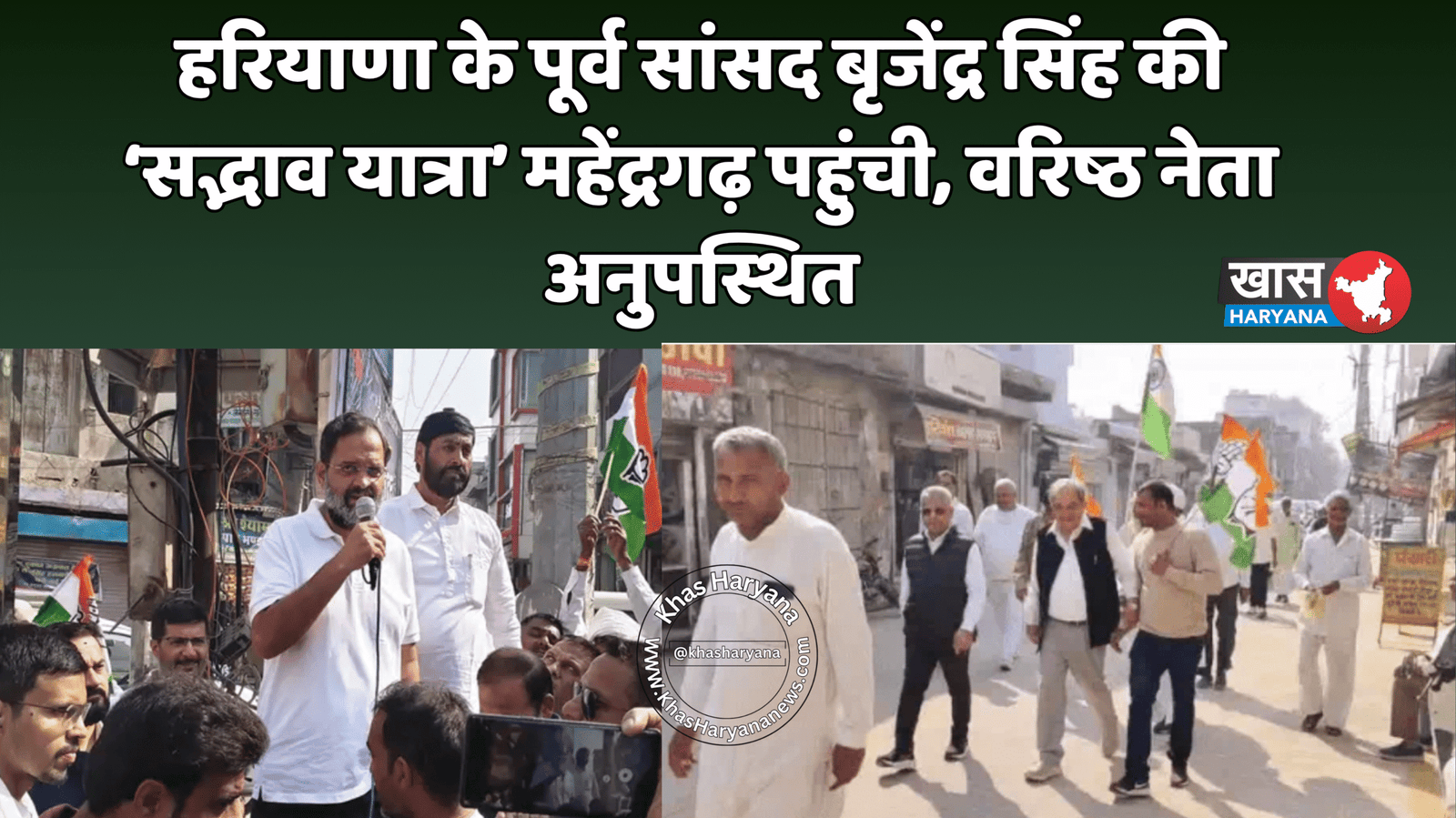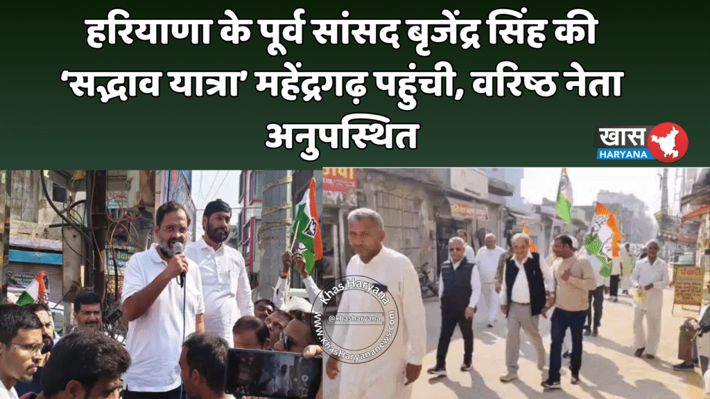 महेंद्रगढ़, हरियाणा: हरियाणा के पूर्व सांसद बृजेंद्र सिंह की ‘सद्भाव यात्रा’ शनिवार को महेंद्रगढ़ हलके में पहुंची। यात्रा के दौरान जिला कांग्रेस के कई वरिष्ठ नेता अनुपस्थित रहे। महेंद्रगढ़ से कांग्रेस प्रत्याशी रहे राव दान सिंह, अटेली से अनीता यादव और नांगल चौधरी से पार्टी की विधायक मंजू चौधरी सहित कई प्रमुख नेता कार्यक्रम में शामिल नहीं हुए। केवल जिला कांग्रेस अध्यक्ष सतबीर सिंह झुकिया और महिला जिला अध्यक्ष ही यात्रा में मौजूद रहीं।