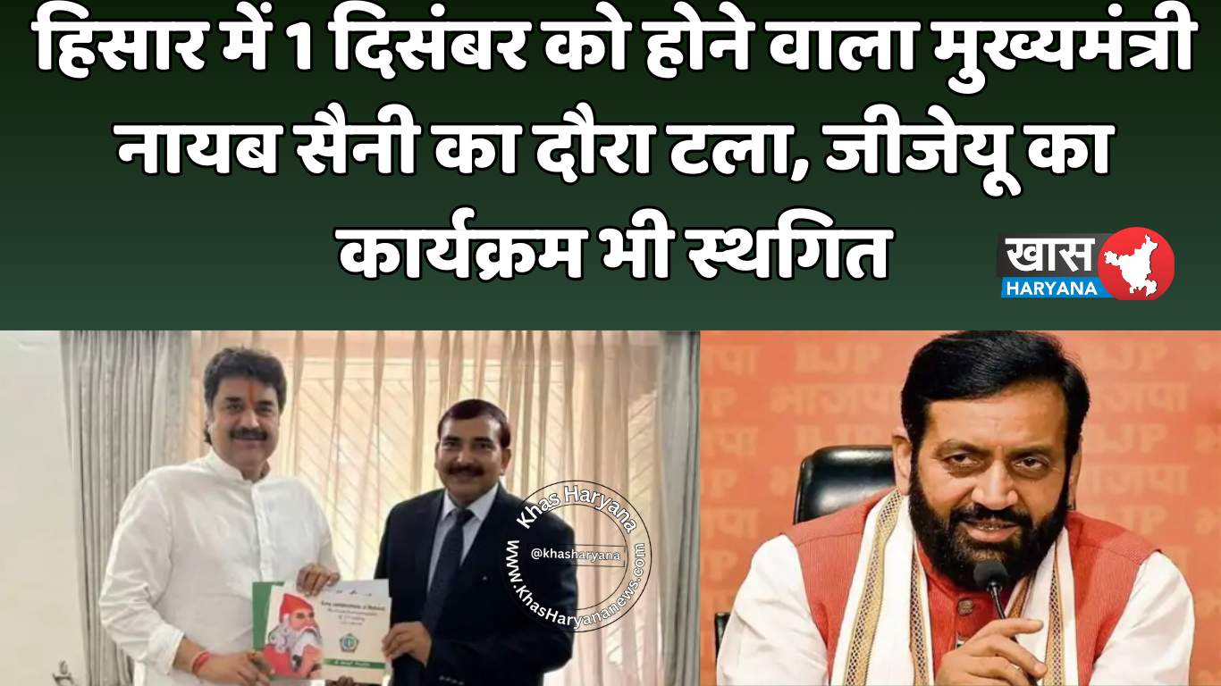 मुख्यमंत्री नायब सैनी को 1 दिसंबर को हिसार आकर करोड़ों रुपये की परियोजनाओं का उद्घाटन करना था। प्रमुख कार्यक्रम इस प्रकार थे: