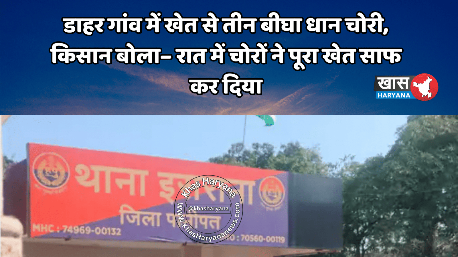 पानीपत जिले के इसराना थाना क्षेत्र के अंतर्गत आने वाले डाहर गांव में चोरी की एक बड़ी वारदात सामने आई है। अज्ञात चोरों ने एक किसान के खेत से करीब तीन बीघा तैयार धान चोरी कर लिया। इस घटना से ग्रामीणों में भय और नाराजगी का माहौल है। पीड़ित किसान सत्यजीत ने बताया कि उसने 1 नवंबर को अपने खेत में धान की कटाई और झड़ाई पूरी कर ली थी।
