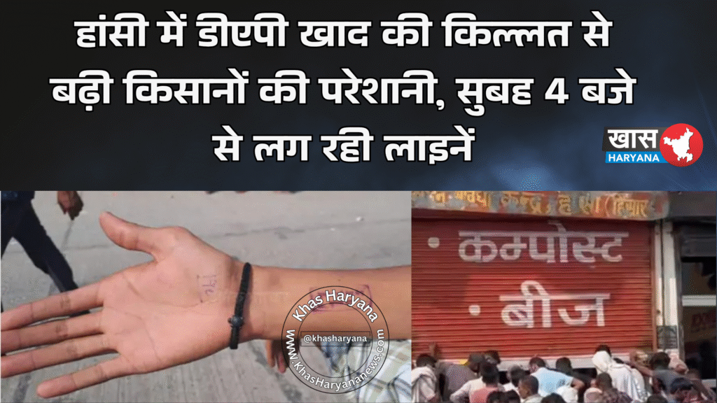 हिसार जिले के हांसी में डीएपी खाद की किल्लत ने किसानों की चिंता बढ़ा दी है। सोमवार को हांसी अनाज मंडी के सामने स्थित किसान सेवा केंद्र पर खाद लेने के लिए भारी भीड़ जमा हो गई, जिसके चलते पुलिस को मौके पर बुलाना पड़ा।