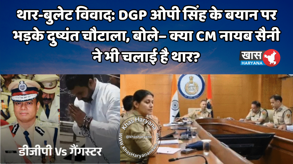 थार-बुलेट विवाद: DGP ओपी सिंह के बयान पर भड़के दुष्यंत चौटाला, बोले– क्या CM नायब सैनी ने भी चलाई है थार?