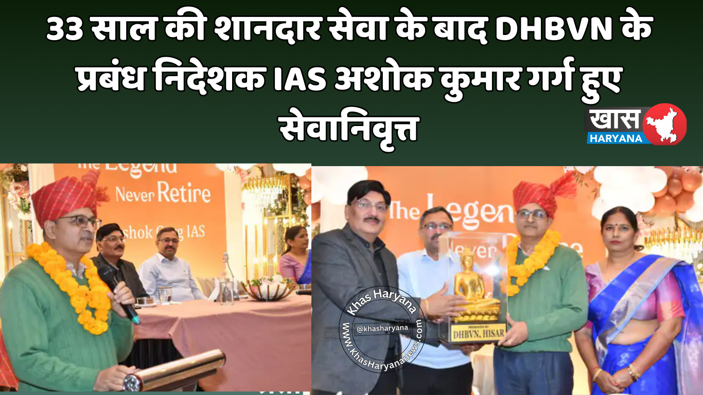 33 साल की शानदार सेवा के बाद DHBVN के प्रबंध निदेशक IAS अशोक कुमार गर्ग हुए सेवानिवृत्त