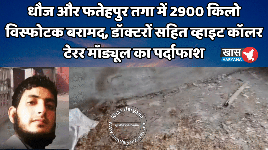 दिल्ली के नजदीक स्थित फरीदाबाद के धौज और फतेहपुर तगा इलाके में दो अलग-अलग मकानों से कुल 2900 किलो विस्फोटक बरामद हुआ है। यह पूरी साजिश ‘व्हाइट कॉलर टेरर मॉड्यूल’ का हिस्सा बताई जा रही है, जिसमें समाज के भरोसेमंद चेहरे शामिल थे।