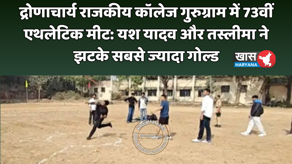 गुरुग्राम जिले के द्रोणाचार्य राजकीय कॉलेज में 73वीं वार्षिक एथलेटिक मीट का शानदार आयोजन किया गया। दो दिवसीय इस खेल समारोह में कॉलेज के विभिन्न विभागों और कक्षाओं के सैकड़ों खिलाड़ियों ने हिस्सा लिया। आयोजन के दौरान ट्रैक और फील्ड इवेंट्स में खिलाड़ियों का उत्साह देखने लायक था। युवाओं ने दमदार प्रदर्शन कर खेल प्रतिभा का परिचय दिया।