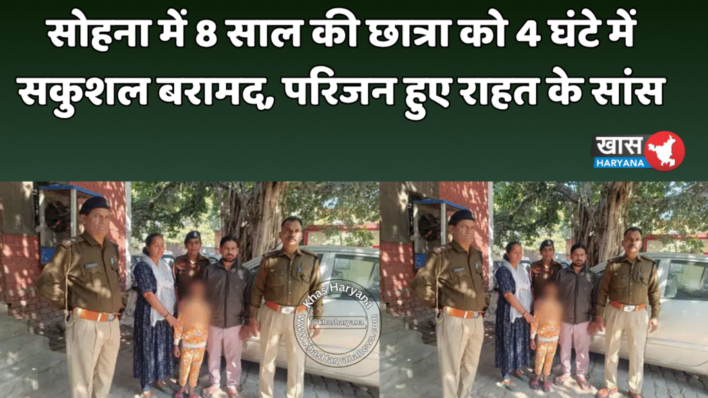 गुरुग्राम के सोहना क्षेत्र में पुलिस ने त्वरित कार्रवाई करते हुए आठ वर्षीय छात्रा को मात्र चार घंटे के भीतर सकुशल बरामद कर दिया। बच्ची को उसके परिजनों को सुरक्षित सौंप दिया गया है। यह घटना उस समय घटी जब दूसरी कक्षा में पढ़ने वाली छात्रा स्कूल से घर लौट रही थी और अचानक लापता हो गई।