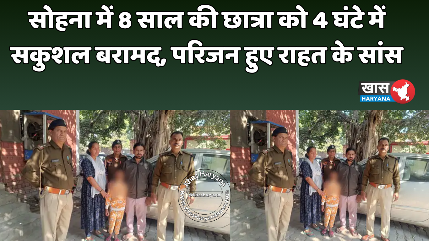 सोहना में 8 साल की छात्रा को 4 घंटे में सकुशल बरामद, परिजन हुए राहत के सांस