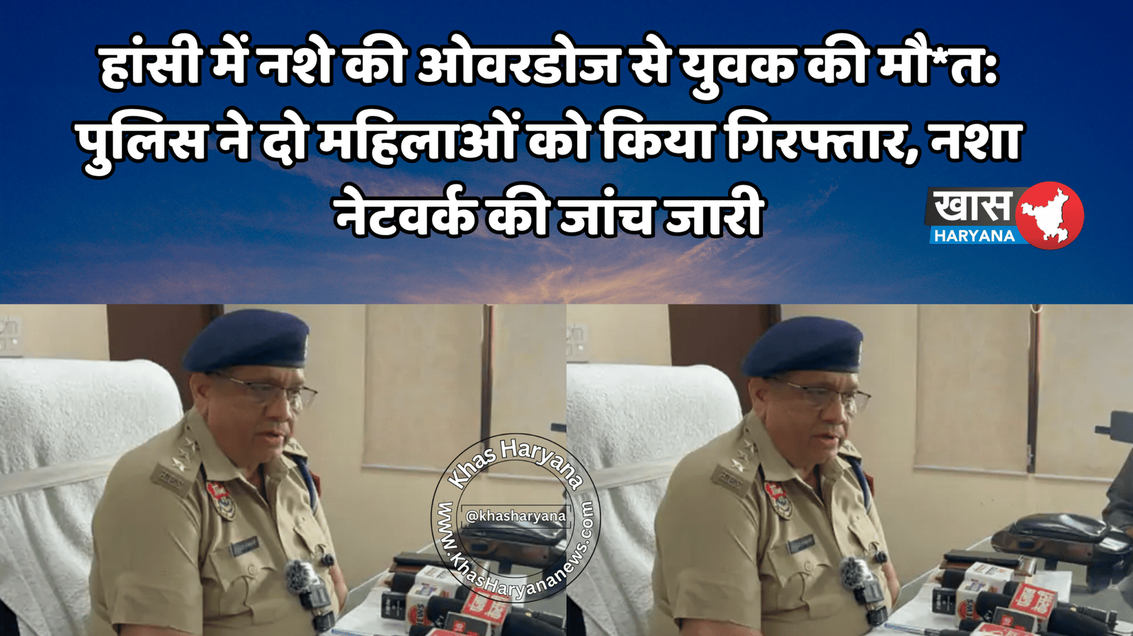 हिसार जिले के हांसी शहर में नशे के खिलाफ पुलिस की बड़ी कार्रवाई सामने आई है। दो दिन पहले हुई युवक की नशे की ओवरडोज से मौत के मामले में पुलिस ने बुधवार को दो महिलाओं को गिरफ्तार किया है। इस संबंध में जानकारी डीएसपी विनोद शंकर ने प्रेस कॉन्फ्रेंस के दौरान दी। पुलिस का कहना है कि गिरफ्तार महिलाओं से पूछताछ में नशे के नेटवर्क से जुड़ी अहम जानकारी मिलने की उम्मीद है।