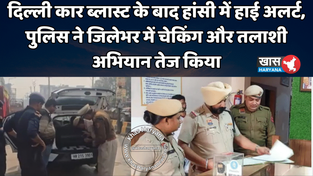 दिल्ली कार ब्लास्ट के बाद हांसी में हाई अलर्ट, पुलिस ने जिलेभर में चेकिंग और तलाशी अभियान तेज किया