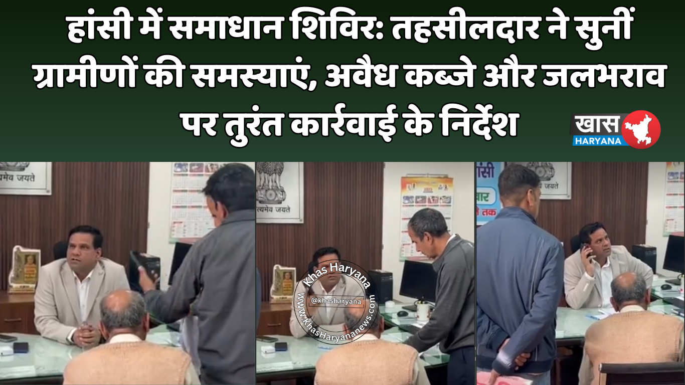 हांसी में समाधान शिविर: तहसीलदार ने सुनीं ग्रामीणों की समस्याएं, अवैध कब्जे और जलभराव पर तुरंत कार्रवाई के निर्देश