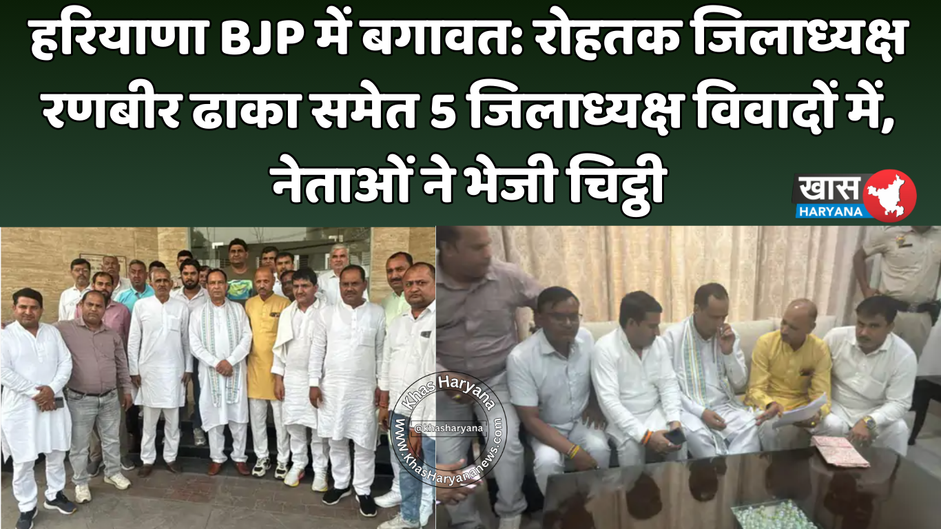 हरियाणा बीजेपी में इन दिनों संगठन और नेताओं के बीच विवाद की लहर देखने को मिल रही है। प्रदेश के पांच जिलाध्यक्षों के खिलाफ बगावत की आवाजें उठ रही हैं, और इनकी शिकायत प्रदेश अध्यक्ष मोहनलाल बड़ौली तक पहुंच गई है। गोहाना, भिवानी, फतेहाबाद, जींद के बाद अब रोहतक जिलाध्यक्ष रणबीर ढाका के खिलाफ ताजा मामला सामने आया है।