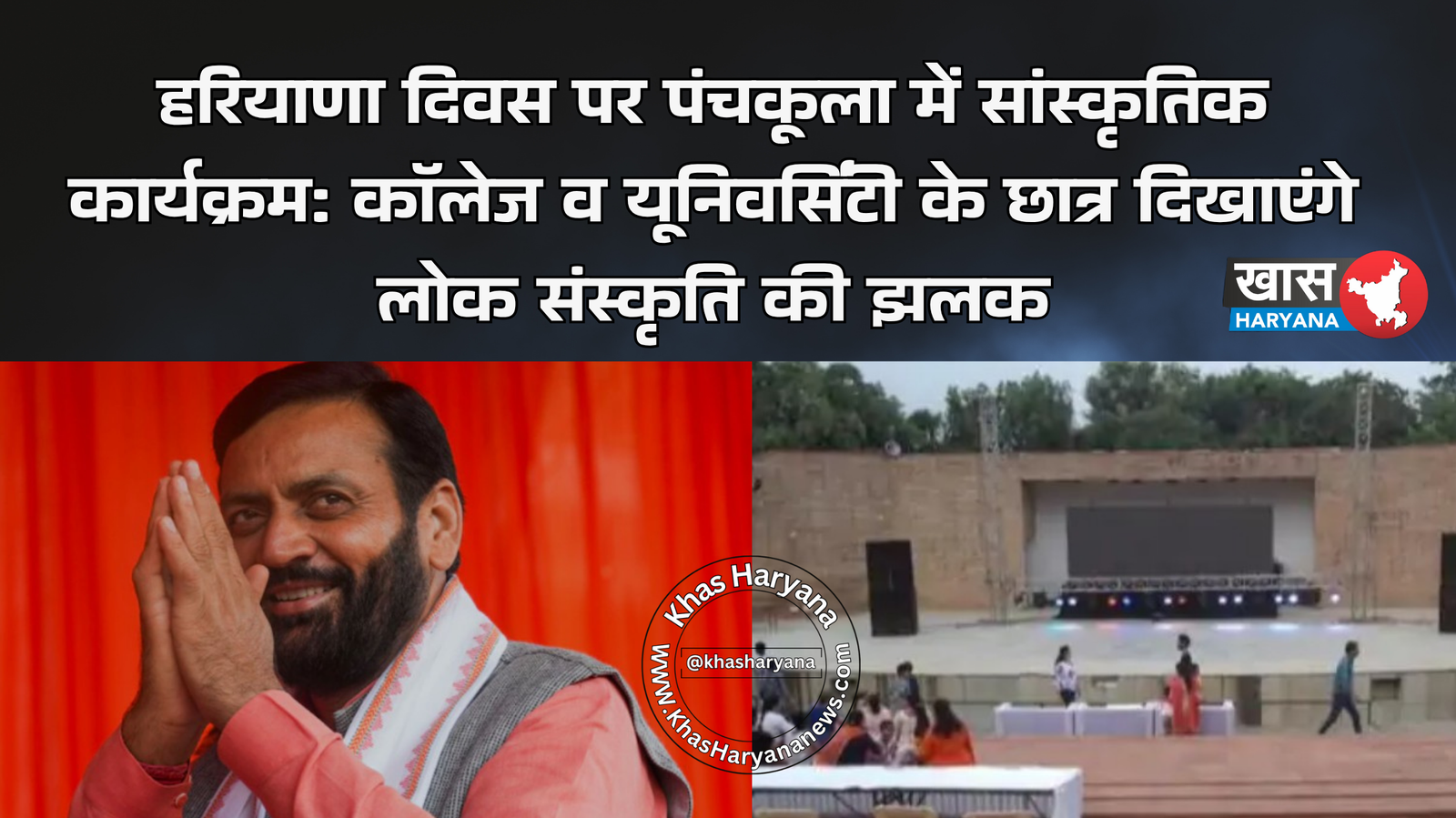 हरियाणा दिवस पर पंचकूला के यवनिका ओपन एयर थिएटर में कॉलेजों और यूनिवर्सिटियों के छात्र हरियाणवी लोक संस्कृति पर आधारित गीत, रागनी और नृत्य प्रस्तुत करेंगे। विजेता प्रतिभागियों को मुख्यमंत्री नायब सैनी 3 नवंबर को सम्मानित करेंगे।