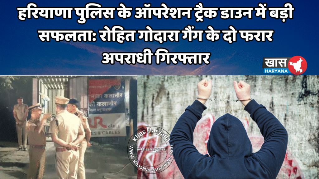 हरियाणा पुलिस के ऑपरेशन ट्रैक डाउन अभियान में आज एक और महत्वपूर्ण सफलता मिली है। विशेष कार्य बल (STF) गुरुग्राम की टीम ने रोहित गोदारा गैंग के दो सक्रिय सदस्य नरेश कुमार और संजय उर्फ संजीव को गिरफ्तार किया। दोनों आरोपी गांव सैदपुर, जिला नारनौल के निवासी हैं और पिछले 11 महीनों से पुलिस गिरफ्त से फरार थे।