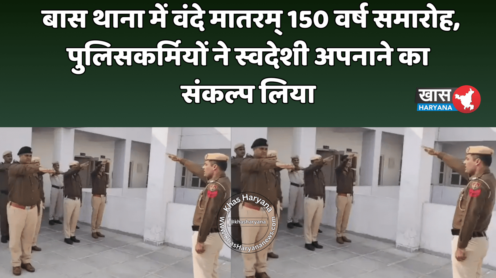 हिसार जिले के बास थाना में शनिवार को राष्ट्रीय गीत वंदे मातरम् के 150 वर्ष पूरे होने के उपलक्ष्य में एक विशेष कार्यक्रम आयोजित किया गया। इस अवसर पर सभी पुलिसकर्मियों ने सामूहिक रूप से वंदे मातरम् गाया और देशभक्ति की भावना को जीवंत किया। कार्यक्रम में पुलिसकर्मियों ने स्वदेशी अपनाने और विदेशी उत्पादों के बहिष्कार का संकल्प भी लिया।