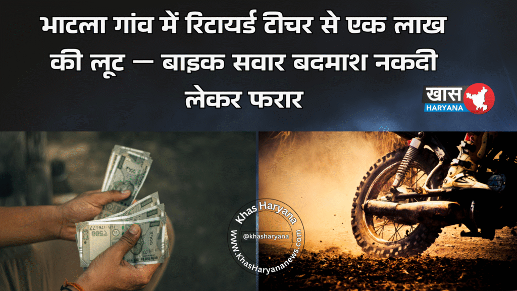हिसार के हांसी शहर के नजदीकी गांव भाटला में गुरुवार सुबह करीब 11 बजे एक रिटायर्ड टीचर से एक लाख रुपए की नकदी लूट ली गई।