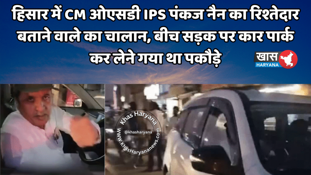 हिसार में CM ओएसडी IPS पंकज नैन का रिश्तेदार बताने वाले का चालान, बीच सड़क पर कार पार्क कर लेने गया था पकौड़े