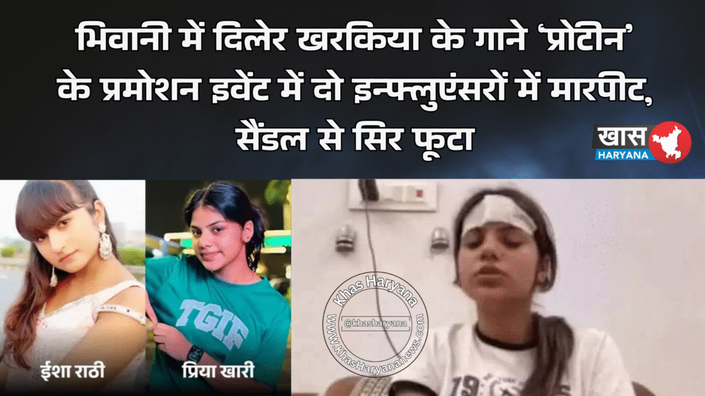 भिवानी के खरक कलां गांव में सिंगर दिलेर खरकिया और एक्ट्रेस अंजलि राघव के गाने ‘प्रोटीन’ के प्रमोशन इवेंट में विवाद हो गया। इन्फ्लुएंसर ईशा राठी और प्रिया खारी के बीच झगड़ा इतना बढ़ा कि सैंडल से हमला हुआ और प्रिया के सिर से खून बहने लगा।