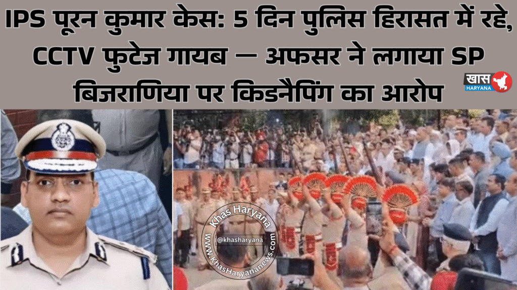 हरियाणा के सीनियर IPS वाई पूरन कुमार के सुसाइड केस में नए खुलासे सामने आए हैं। एक सीनियर प्रशासनिक अधिकारी ने दावा किया है कि पूरन कुमार 5 दिन तक पुलिस की गैरकानूनी हिरासत में रहे, और इस दौरान उन्हें ह्यूमिलिएट किया गया। अधिकारी ने आरोप लगाया है कि यह ‘किडनैपिंग’ रोहतक SP नरेंद्र बिजराणिया के इशारे पर की गई।