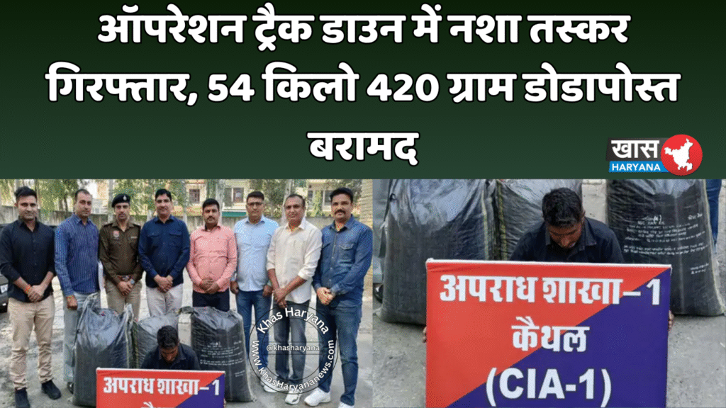 कैथल जिले में नशा तस्करों पर शिकंजा कसते हुए पुलिस ने ऑपरेशन ‘ट्रैक डाउन’ के तहत बड़ी सफलता हासिल की है। पुलिस ने एक आरोपी को गिरफ्तार कर उसके कब्जे से 54 किलो 420 ग्राम डोडापोस्त बरामद किया है। पकड़े गए आरोपी की पहचान पंजाब के जिला पटियाला के गांव मरौड़ी निवासी बलविंद्र सिंह के रूप में हुई है। आरोपी पंजाब से डोडापोस्त लेकर कैथल में सप्लाई करने आ रहा था।