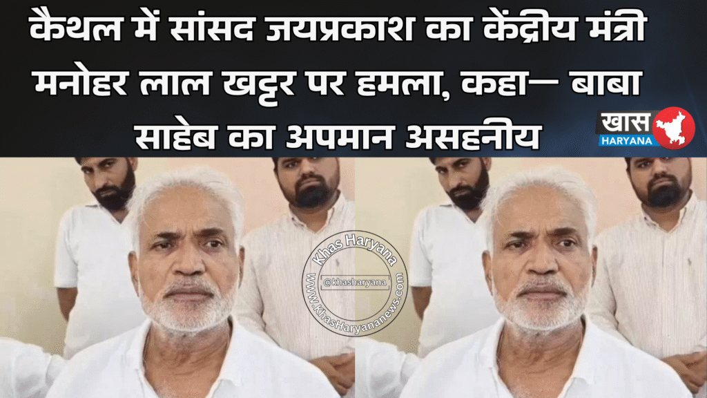 कैथल (हरियाणा): कैथल से सांसद जयप्रकाश (जेपी) ने केंद्रीय मंत्री मनोहर लाल खट्टर द्वारा संविधान निर्माण को लेकर दिए गए बयान पर तीखी प्रतिक्रिया दी है। सांसद जयप्रकाश ने सोशल मीडिया पर पोस्ट जारी कर कहा कि केंद्रीय मंत्री का यह बयान — “अकेले बाबा साहेब डॉ. भीमराव अंबेडकर ने संविधान नहीं लिखा” — बेहद दुर्भाग्यपूर्ण और शर्मनाक है।
