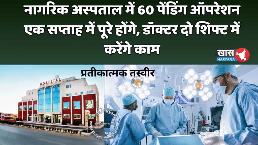 कैथल जिले के नागरिक अस्पताल में लंबे समय से पेंडिंग पड़े ऑपरेशनों को अब एक सप्ताह के भीतर पूरा करने का फैसला लिया गया है। स्वास्थ्य विभाग ने सभी ऑपरेशन करने वाले डॉक्टरों को आदेश जारी कर दिया है कि वे अगले सात दिनों तक दो शिफ्टों में लगातार काम करें। विभाग का उद्देश्य है कि किसी भी मरीज का ऑपरेशन लंबित न रहे और उन्हें जल्द से जल्द उपचार उपलब्ध कराया जा सके।