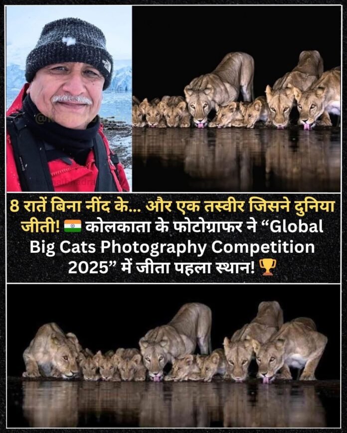 कोलकाता के फोटोग्राफर राजर्षि बनर्जी ने 8 रातें बिना सोए शेरनियों और उनके बच्चों की दुर्लभ तस्वीर ली। इस शानदार शॉट के लिए उन्हें “Global Big Cats Photography Competition 2025” में पहला पुरस्कार मिला।