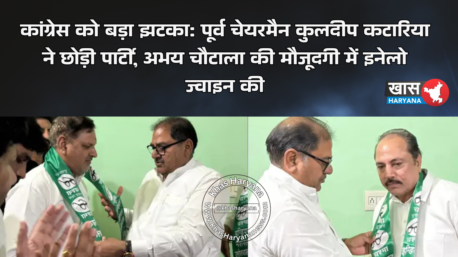 कांग्रेस को बड़ा झटका: पूर्व चेयरमैन कुलदीप कटारिया ने छोड़ी पार्टी, अभय चौटाला की मौजूदगी में इनेलो ज्वाइन की