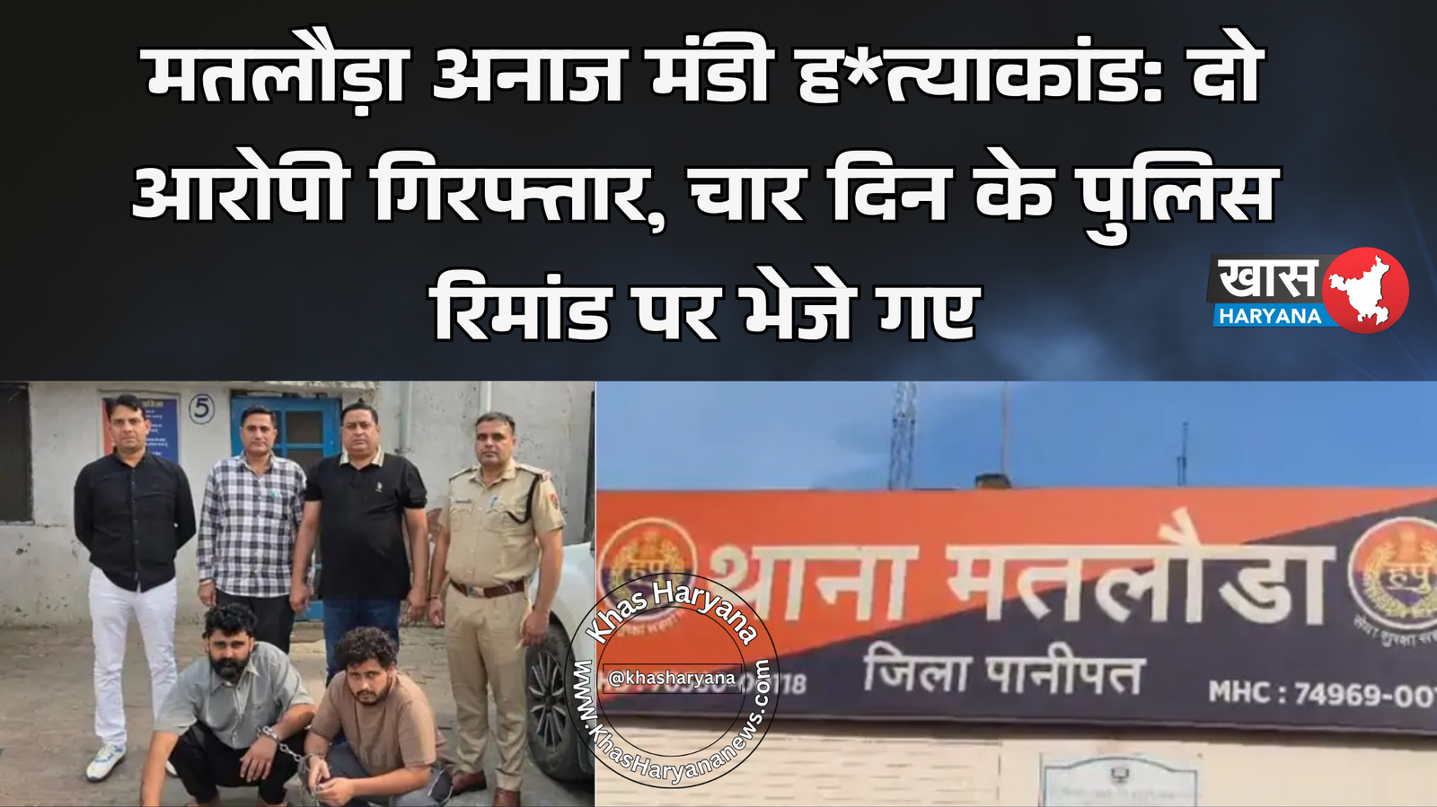 पानीपत जिले के मतलौड़ा अनाज मंडी में 9 अक्टूबर को दुकान नंबर 35 के ऊपर हुए खूनी संघर्ष के मामले में पुलिस ने दो आरोपियों को गिरफ्तार किया है। रविवार देर शाम जोशी रोड, मतलौड़ा से पकड़े गए आरोपियों की पहचान मतलौड़ा निवासी राकेश और खेड़ी मुनक (जिला करनाल) निवासी युवक के रूप में हुई है। सोमवार को दोनों को अदालत में पेश किया गया, जहां से उन्हें चार दिन के पुलिस रिमांड पर भेज दिया गया।