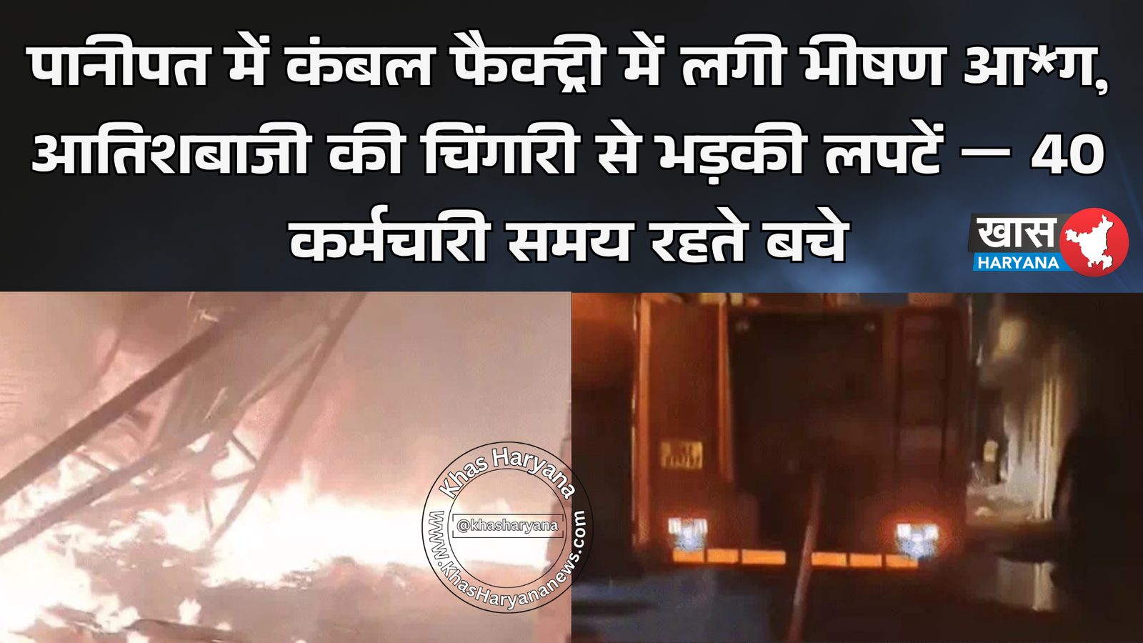 पानीपत: हरियाणा के पानीपत में मंगलवार शाम काबड़ी रोड स्थित कंबल और बोरा बनाने की फैक्ट्री में भीषण आग लग गई। आग लगते ही फैक्ट्री में अफरा-तफरी मच गई। अंदर मौजूद कर्मचारियों ने किसी तरह भागकर अपनी जान बचाई और तुरंत पुलिस व फायर ब्रिगेड को सूचना दी।