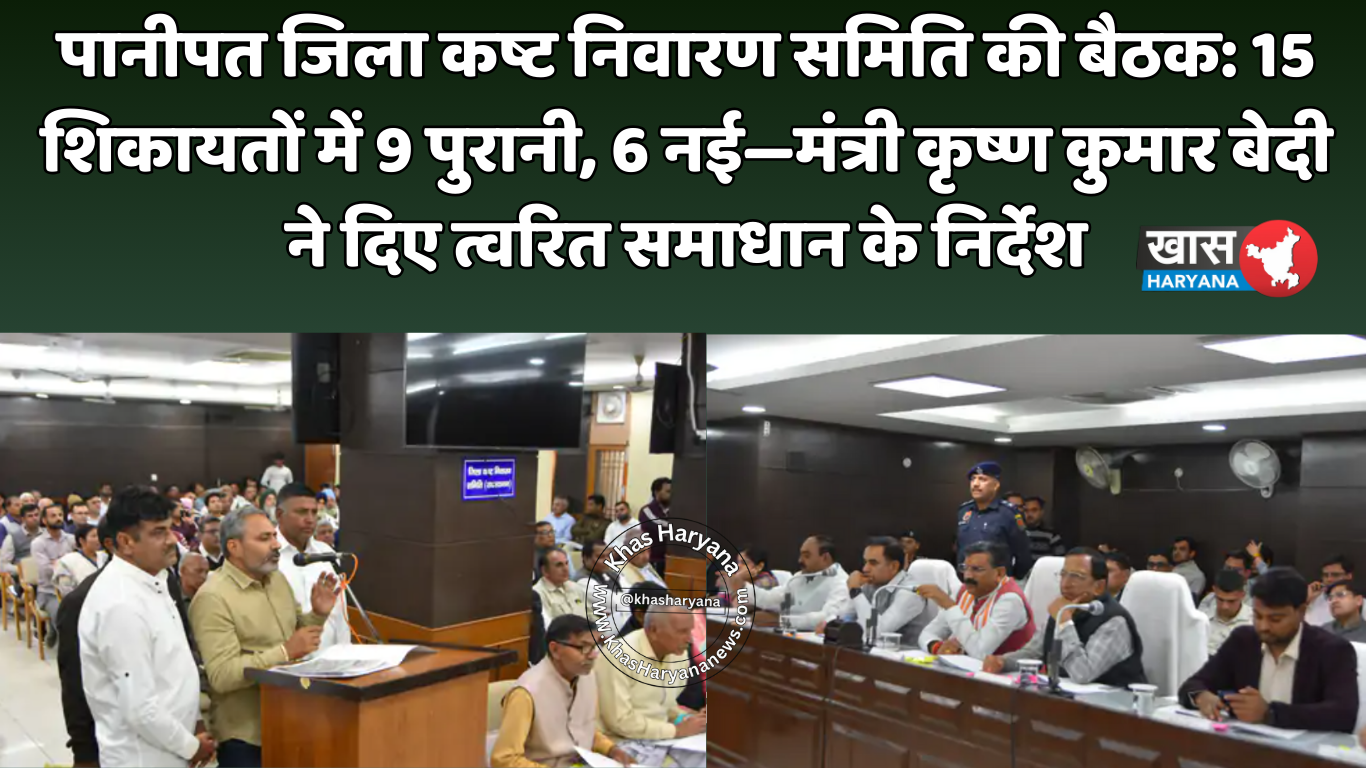 पानीपत जिला कष्ट निवारण समिति की बैठक: 15 शिकायतों में 9 पुरानी, 6 नई—मंत्री कृष्ण कुमार बेदी ने दिए त्वरित समाधान के निर्देश