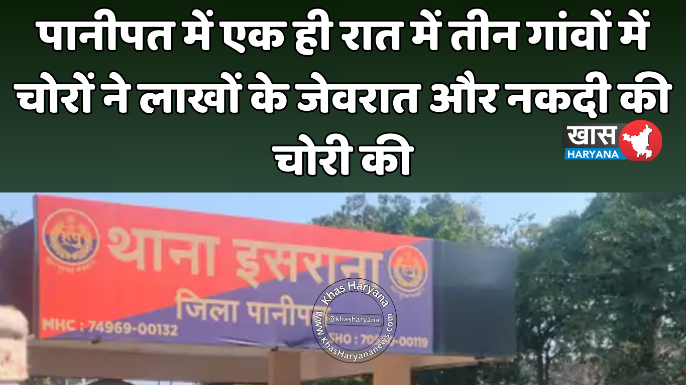 पानीपत जिले के इसराना थाना क्षेत्र में एक ही रात में तीन अलग-अलग गांवों में चोरी की बड़ी घटनाएं सामने आई हैं। चोरों ने लाखों रुपए के जेवरात और नकदी चुरा ली। यह घटनाएं 22 तारीख की रात को हुईं। पुलिस ने पीड़ितों की शिकायतों के आधार पर केस दर्ज कर जांच शुरू कर दी है।