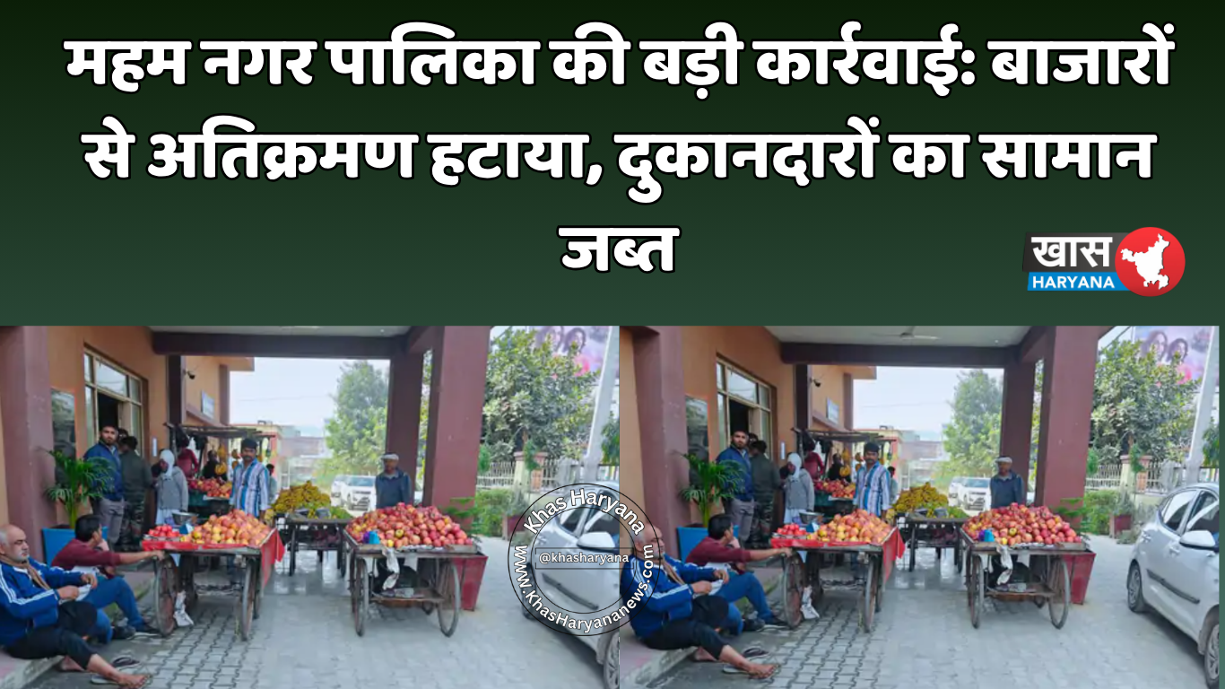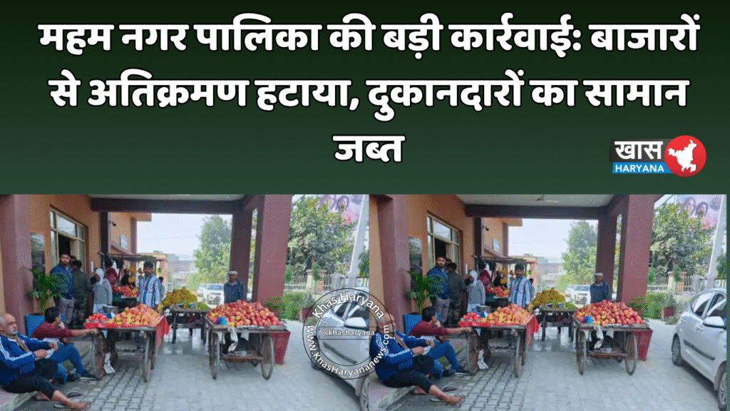 महम नगर पालिका की बड़ी कार्रवाई: बाजारों से अतिक्रमण हटाया, दुकानदारों का सामान जब्त