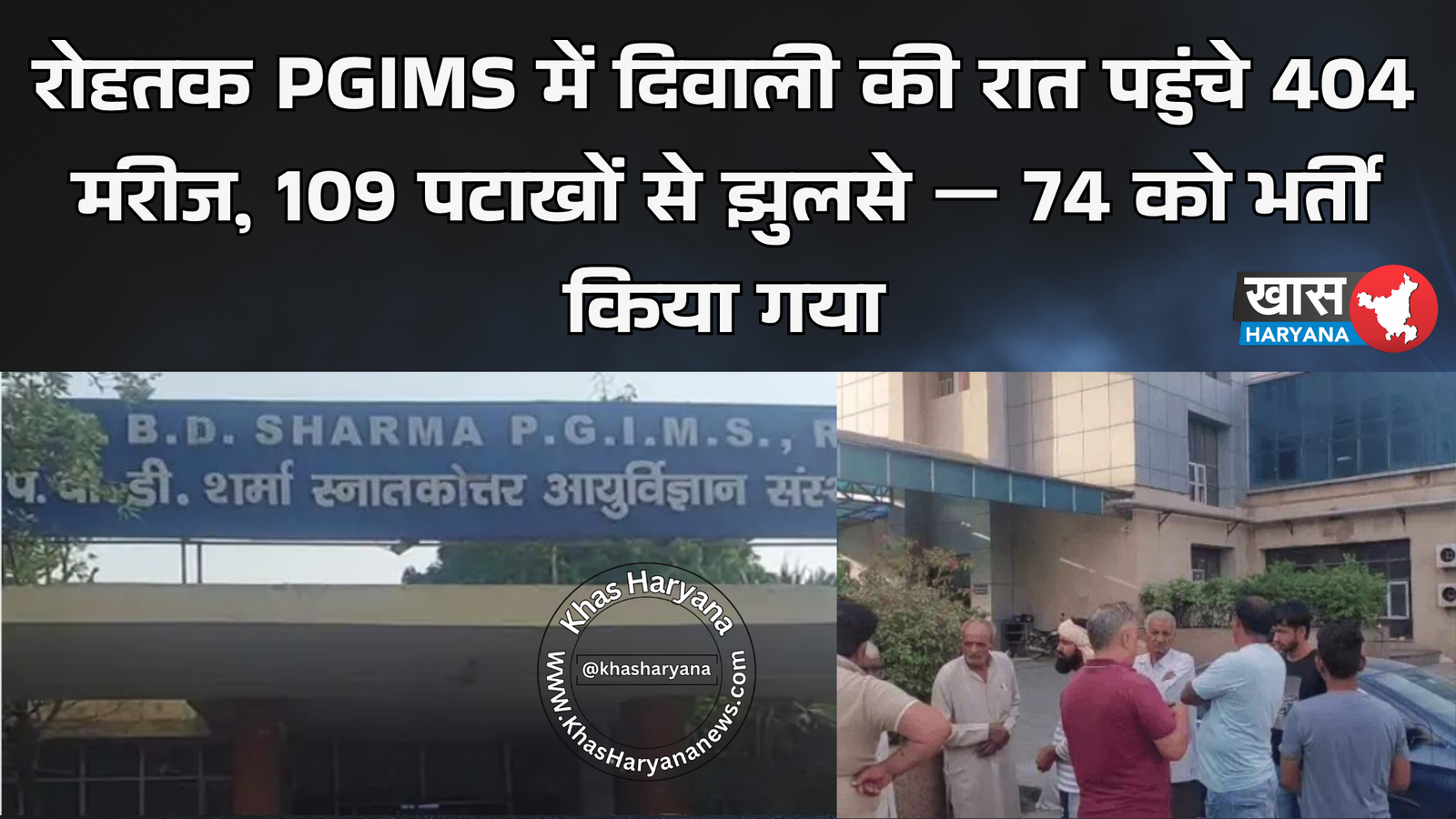 रोहतक PGIMS में दिवाली की रात पहुंचे 404 मरीज, 109 पटाखों से झुलसे — 74 को भर्ती किया गया