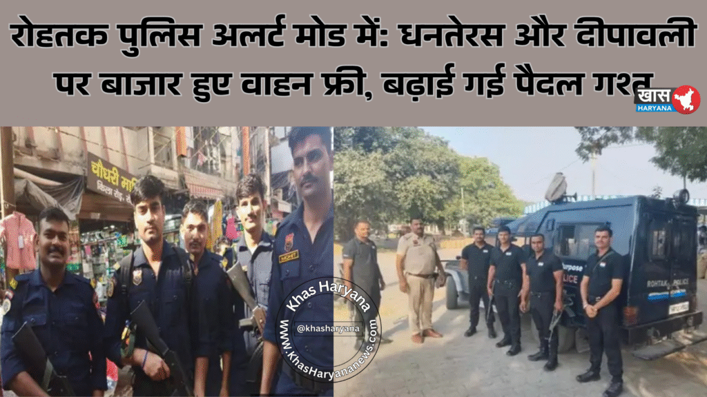 रोहतक: धनतेरस और दीपावली जैसे बड़े त्योहारों को देखते हुए रोहतक पुलिस प्रशासन अलर्ट मोड में है। शहर के भीड़भाड़ वाले इलाकों और बाजारों में पैदल गश्त बढ़ा दी गई है। साथ ही, बाजारों को वाहन फ्री जोन घोषित किया गया है ताकि लोगों को त्योहार की खरीदारी के दौरान किसी परेशानी का सामना न करना पड़े।