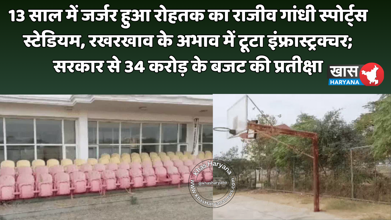 13 साल में जर्जर हुआ रोहतक का राजीव गांधी स्पोर्ट्स स्टेडियम, रखरखाव के अभाव में टूटा इंफ्रास्ट्रक्चर; सरकार से 34 करोड़ के बजट की प्रतीक्षा