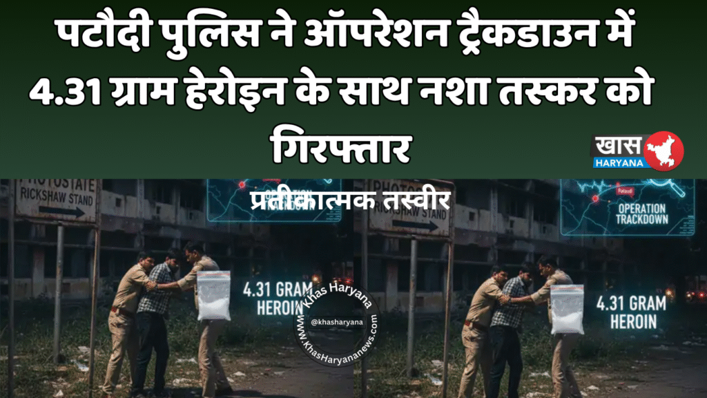 रुग्राम जिले के पटौदी क्षेत्र में पुलिस ने नशा तस्करी के खिलाफ बड़े अभियान ‘ऑपरेशन ट्रैकडाउन’ के तहत एक आरोपी को गिरफ्तार किया है। आरोपी नदीम, जो पटौदी के वार्ड नंबर 12 का निवासी है, के कब्जे से 4.31 ग्राम हेरोइन बरामद हुई।