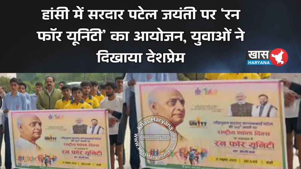 हिसार के हांसी में सरदार वल्लभ भाई पटेल की 150वीं जयंती के अवसर पर ‘रन फॉर यूनिटी’ का आयोजन किया गया। सैकड़ों युवाओं और स्कूली छात्रों ने भाग लेकर देश की एकता और अखंडता का संदेश दिया। आयोजन में कुछ अव्यवस्थाएं भी देखने को मिलीं।