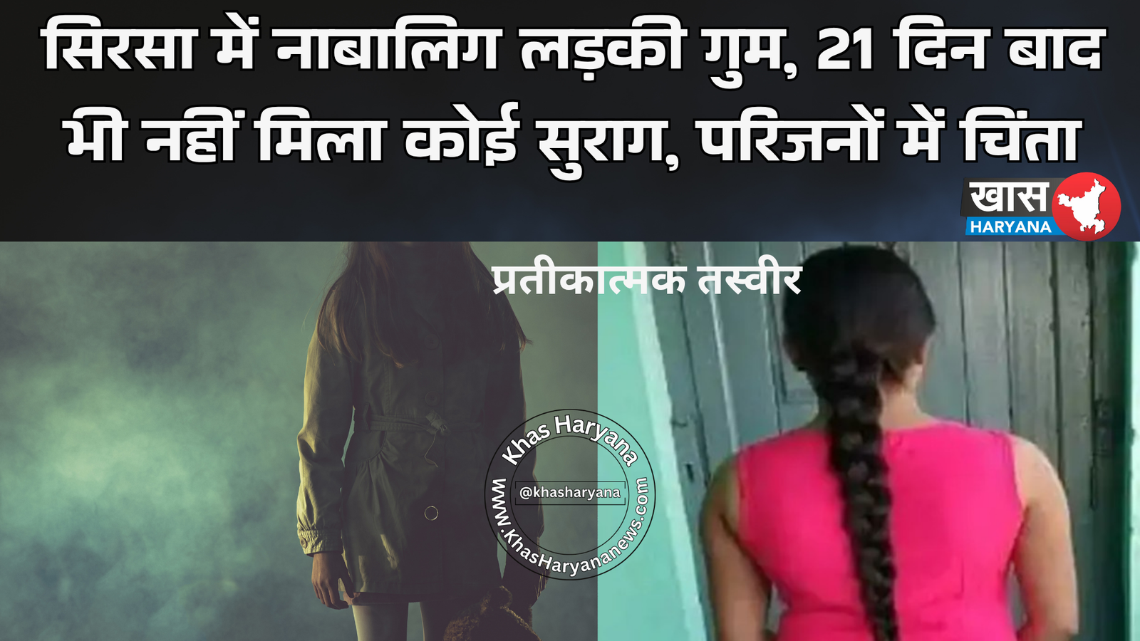 सिरसा जिले में एक 17 वर्षीय नाबालिग लड़की पिछले 21 दिनों से गुम है। परिजनों का कहना है कि इससे पहले उनकी बेटी पर कोई शक नहीं था और न ही किसी से बात करती देखी गई। अचानक घर से निकल जाने के बाद अब परिवार में चिंता का माहौल है। परिजनों का शक है कि किसी ने उनकी बेटी को बहला-फुसलाकर कहीं छिपा लिया हो, लेकिन उन्होंने पुलिस को किसी का नाम नहीं बताया।