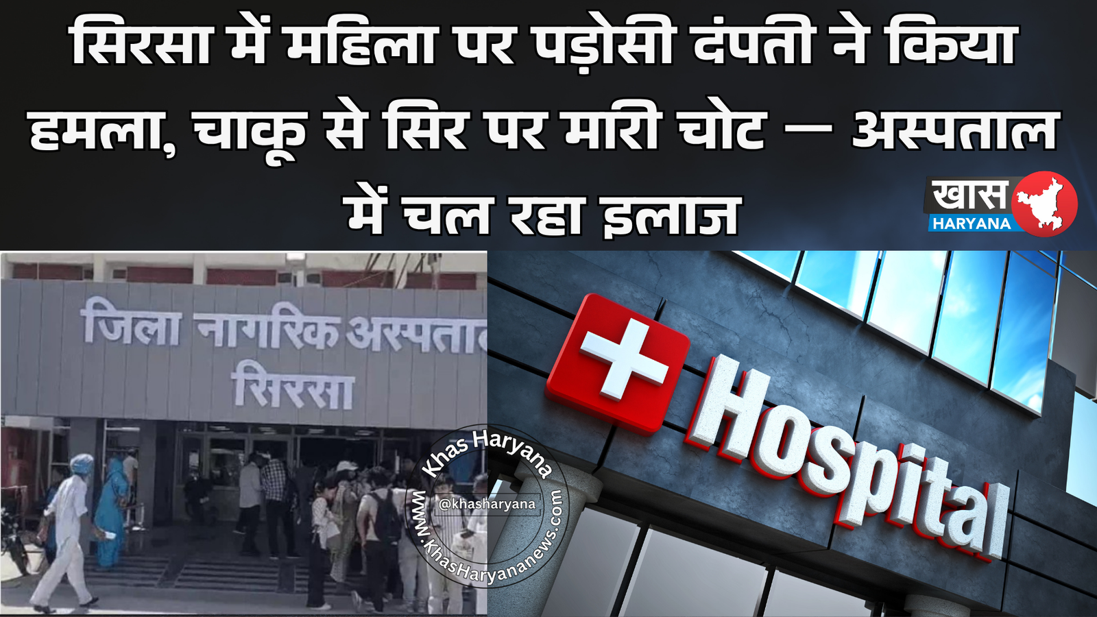 सिरसा जिले में एक महिला पर पड़ोस के ही दंपती ने हमला कर दिया। आरोप है कि महिला पड़ोसी ने न केवल उसे पीटा बल्कि चाकू से वार कर उसके सिर पर गंभीर चोट भी पहुंचाई। घायल महिला का इलाज सिविल अस्पताल सिरसा में चल रहा है।