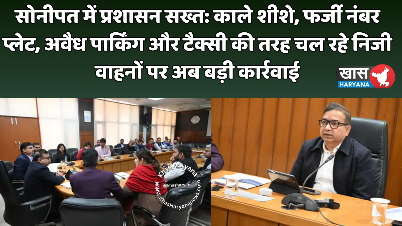 सोनीपत जिला प्रशासन ने सड़क सुरक्षा, कानून व्यवस्था और यातायात अनुशासन को मजबूत करने के लिए बड़ा कदम उठाया है। उपायुक्त सुशील सारवान ने अधिकारियों के साथ बैठक कर कड़े निर्देश जारी किए। उन्होंने जिले में काले शीशे वाले वाहनों, फर्जी और एक्सपायर्ड टेम्परेरी नंबर प्लेट से चल रहे वाहनों, व्यक्तिगत वाहनों को टैक्सी की तरह इस्तेमाल करने और नेशनल हाईवे पर अवैध पार्किंग जैसी गंभीर अनियमितताओं पर सख्त एक्शन लेने के आदेश दिए। इसके साथ ही कोहरे के मौसम में सड़क दुर्घटनाओं को रोकने के लिए सड़क चिह्नांकन को मजबूत करने और स्कूल बसों की नियमित चेकिंग के लिए भी दिशा-निर्देश जारी किए गए।